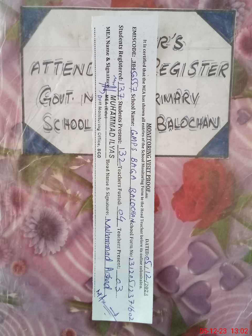 | EMIS Code: 38450557 | Name of School: GMPS BAGA BALOCHAN | |||