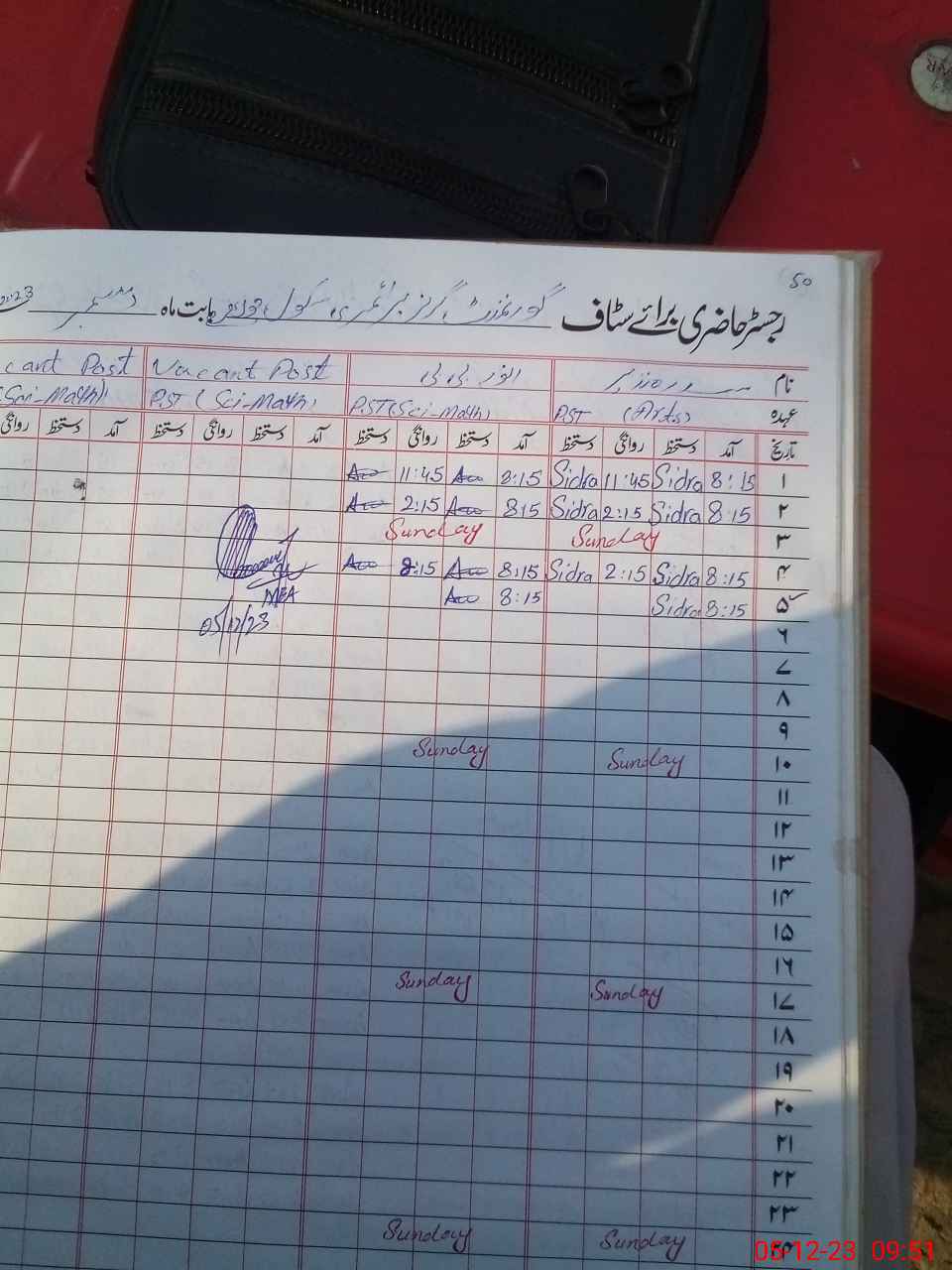 | Name: SI**** NA**** Designation: (School Headmaster's/Headmistress's) PST Phone/Cell Number: 03**** |
