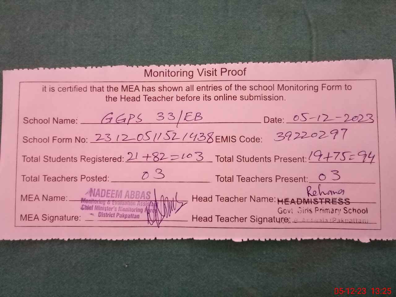 | EMIS Code: 39220297 | Name of School: GGPS 33 EB | |||