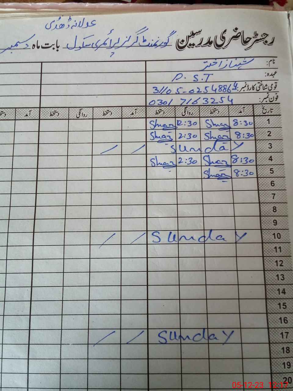 | Name: Sh**** Ak**** Designation: (School Headmaster's/Headmistress's) PST Phone/Cell Number: 03**** |