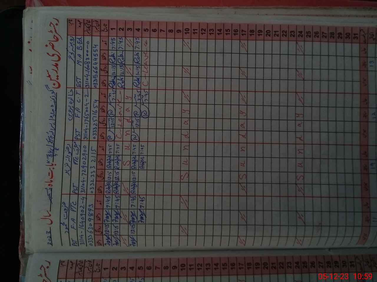 | CNIC | Full Name | Designation | R/C | Absence During Last Calender Month |