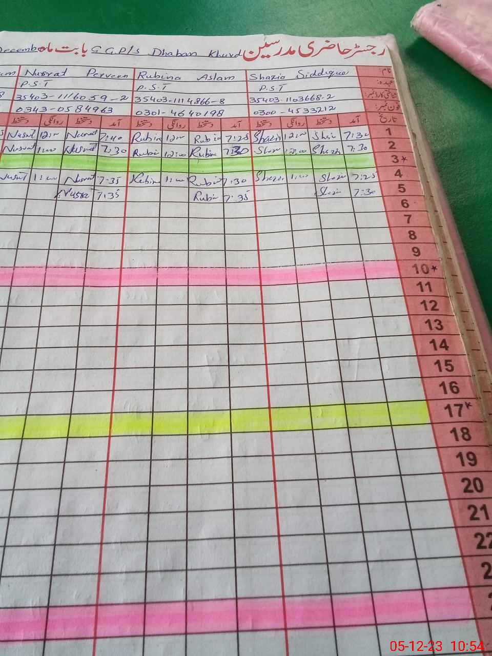 | CNIC | Full Name | Designation | R/C | Absence During Last Calender Month |