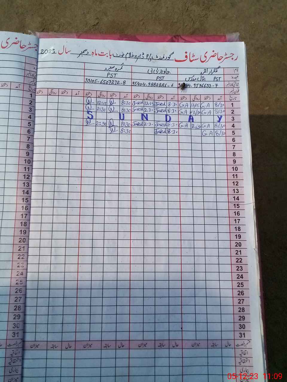 | CNIC | Full Name | Designation | R/C | Absence During Last Calender Month |