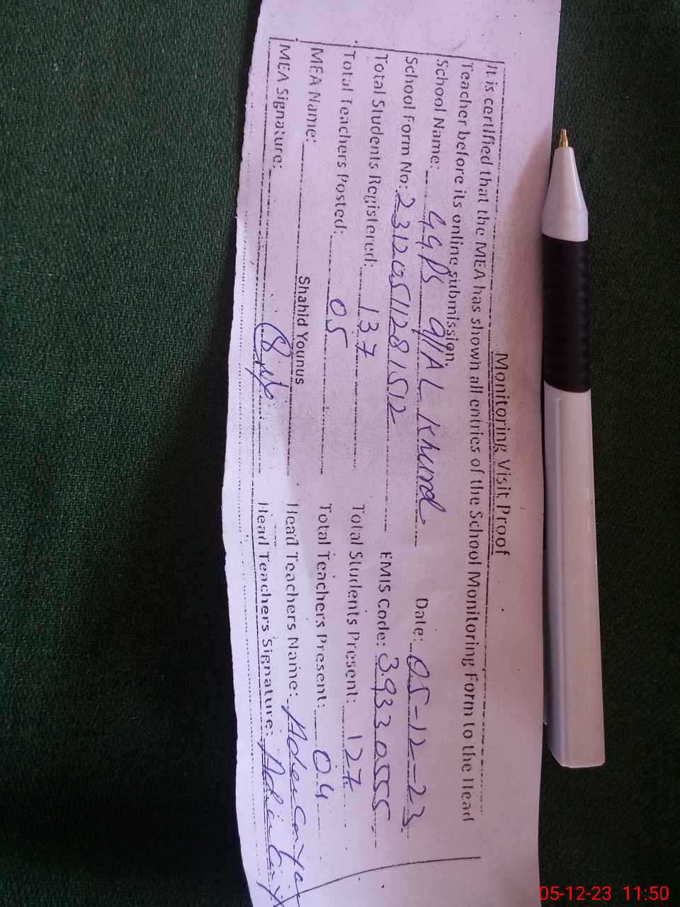 | EMIS Code: 39330555 | Name of School: GGPS 9-1AL KHURD | |||