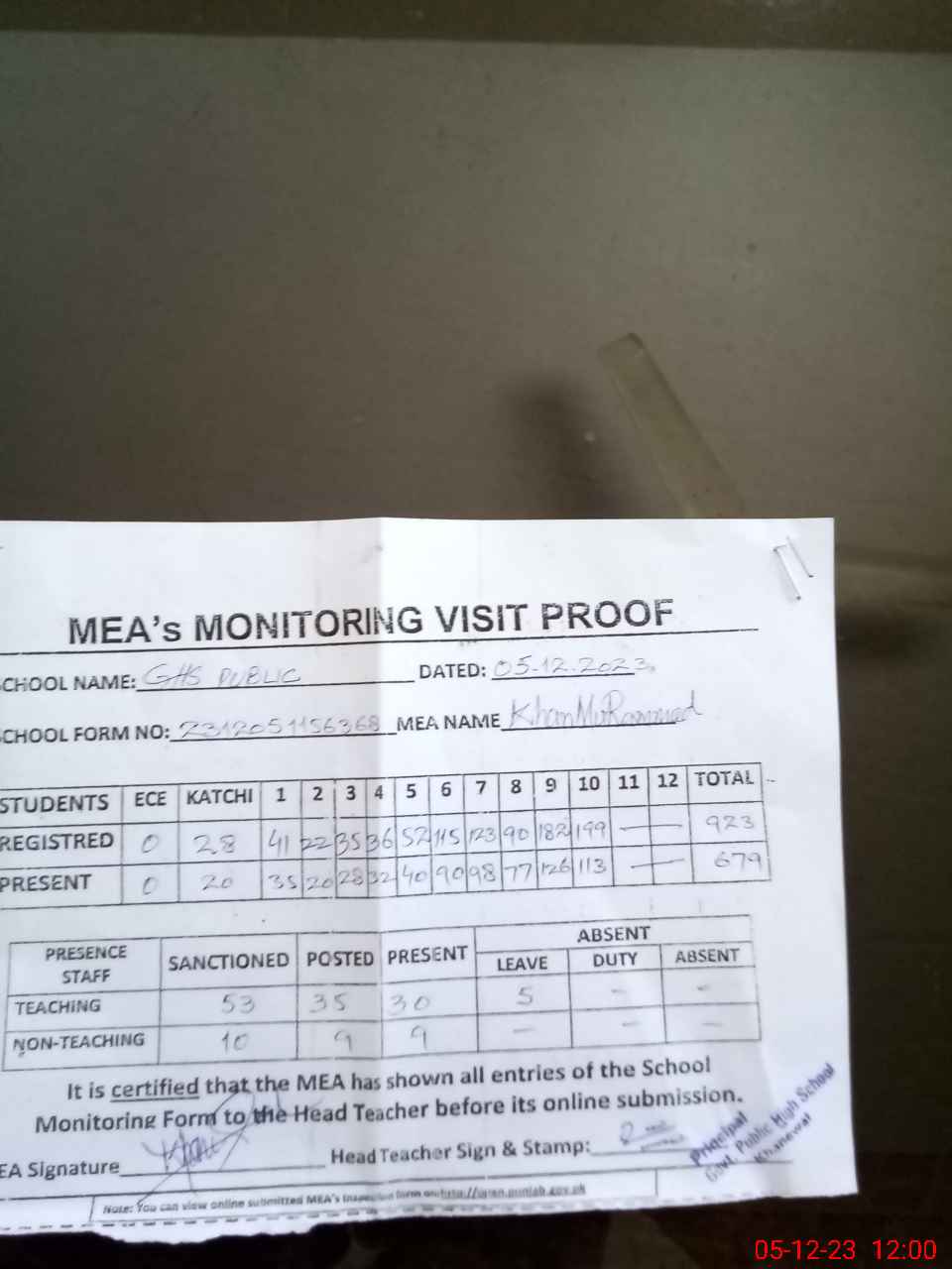 | Monitoring Date: 05-12-2023 | Start Time: 05-12-2023 11:29 AM | End Time: 05-12-2023 12:00 PM | Name of MEA: Kh**** Mu**** (S**** 05**** | |