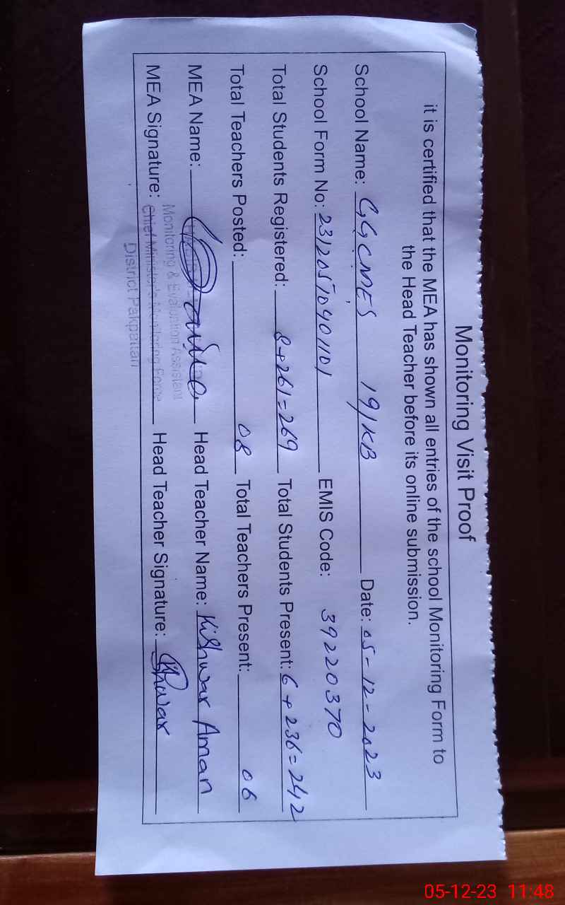 | EMIS Code: 39220370 | Name of School: GGCMES CHAK NO 19 KB | |||