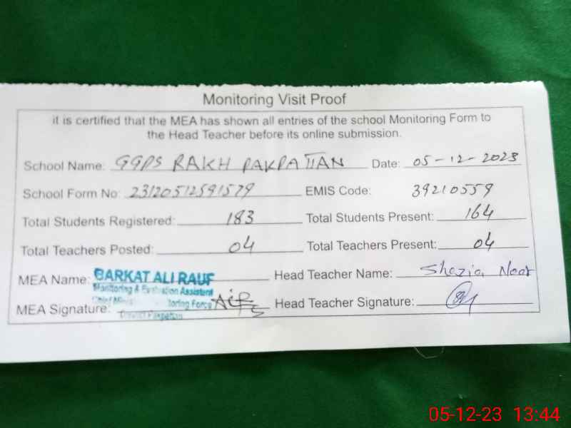 | EMIS Code: 39210559 | Name of School: GGPS RAKH PAKPATTAN | |||