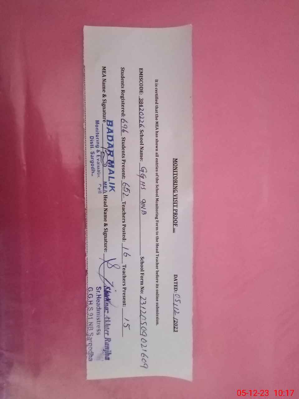 | EMIS Code: 38420226 | Name of School: GGHS CHAK NO.91 NB | |||