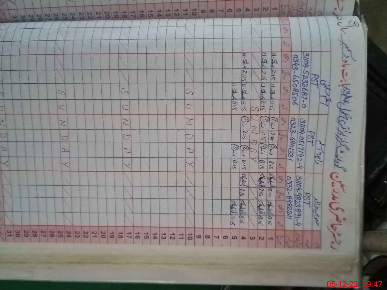 | CNIC | Full Name | Designation | R/C | Absence During Last Calender Month |