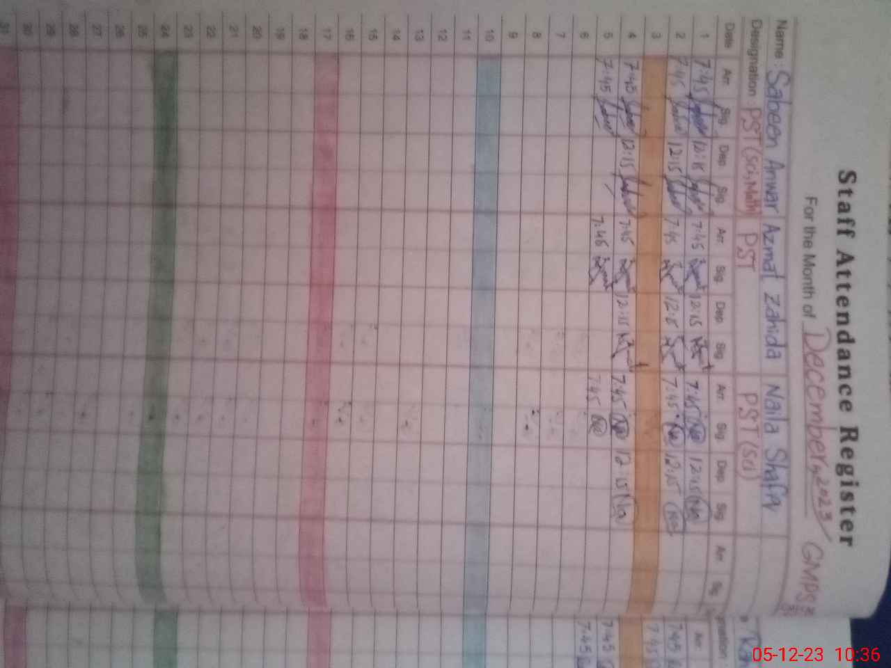 | CNIC | Full Name | Designation | R/C | Absence During Last Calender Month |