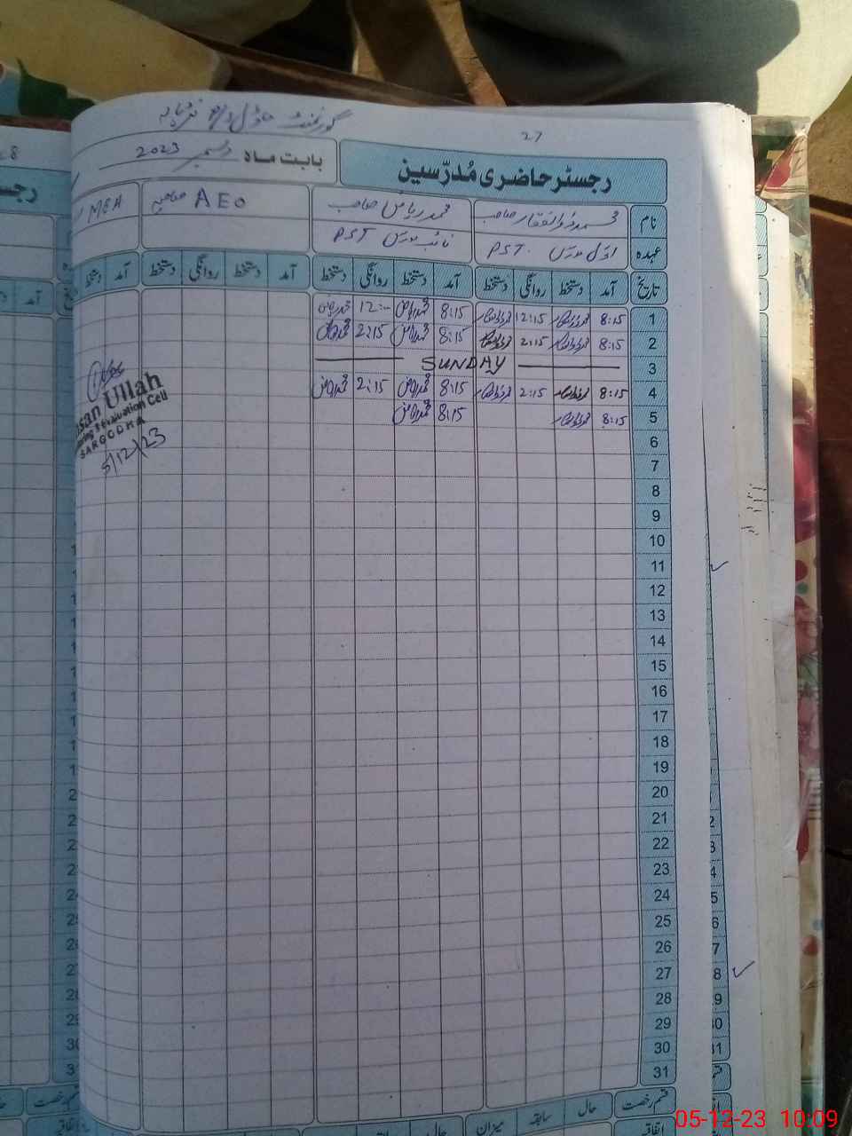 | Name: Mu**** Zu**** Designation: (School Headmaster's/Headmistress's) PST Phone/Cell Number: 03**** |