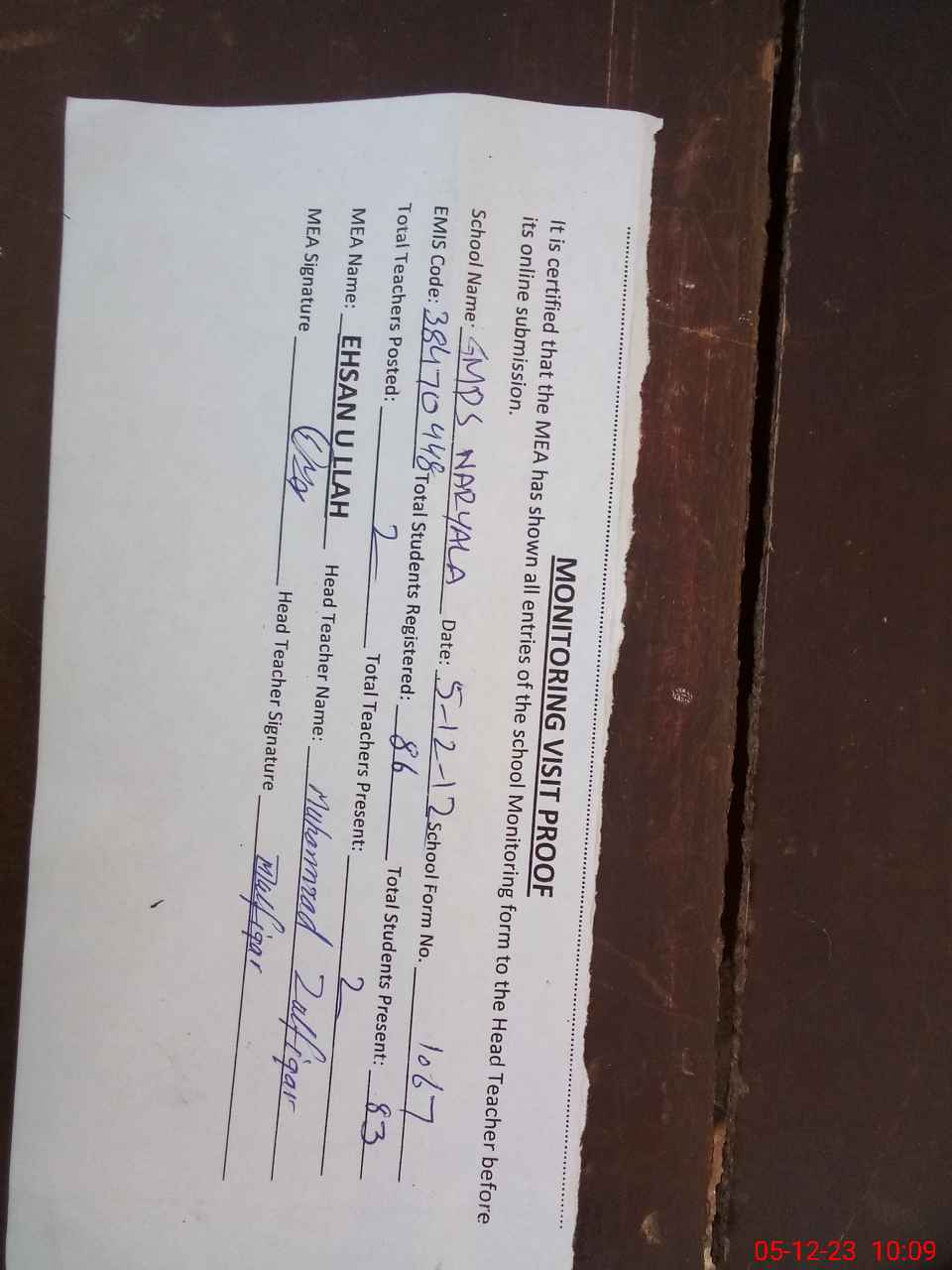 | EMIS Code: 38470448 | Name of School: GMPS NARYALA | |||