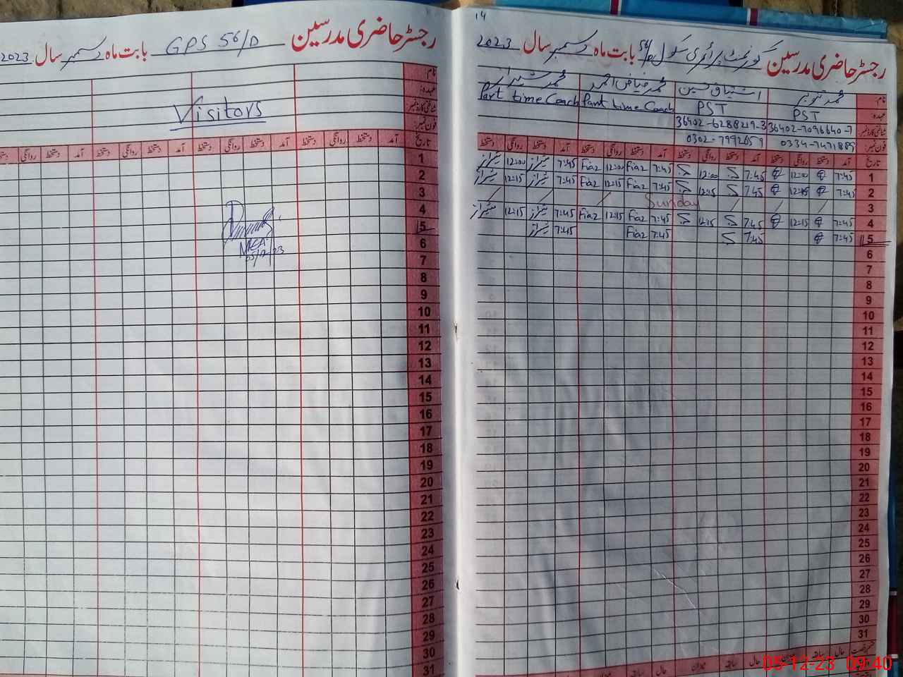 | Name: MTa**** Designation: (School Headmaster's/Headmistress's) PST Phone/Cell Number: 03**** |