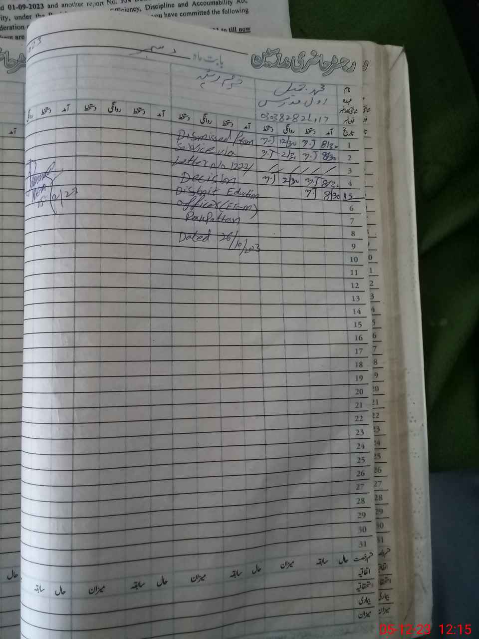 | Name: Sa**** Designation: (School Headmaster's/Headmistress's) PST Phone/Cell Number: 03**** |