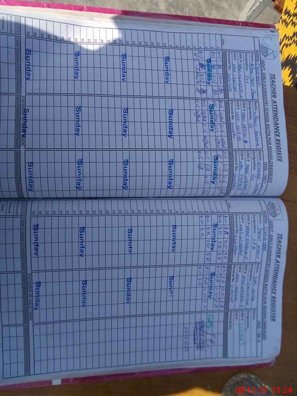 | CNIC | Full Name | Designation | R/C | Absence During Last Calender Month |