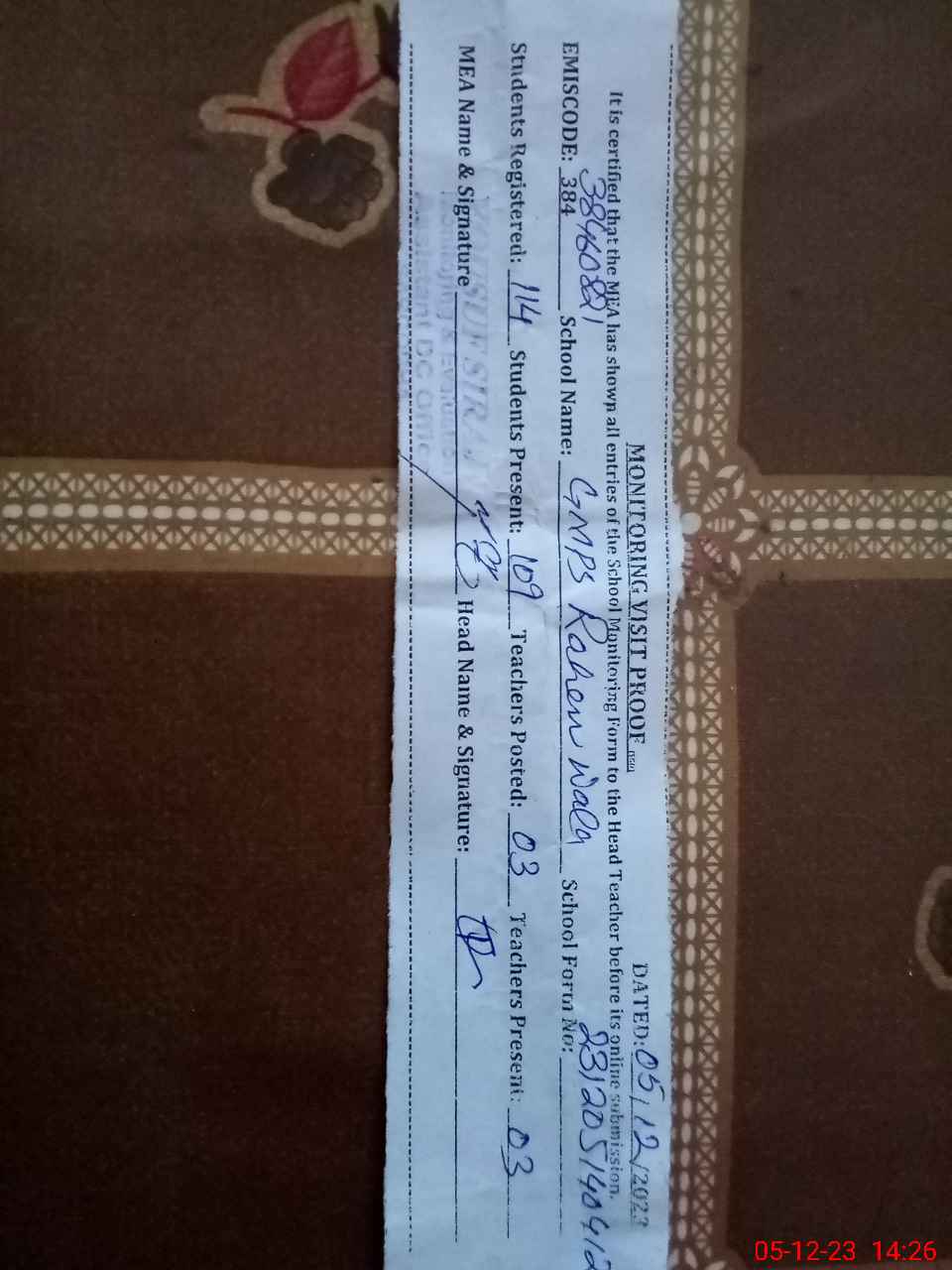 | EMIS Code: 38460821 | Name of School: GMPS RAHEN WALA PO TALIB WALA | |||