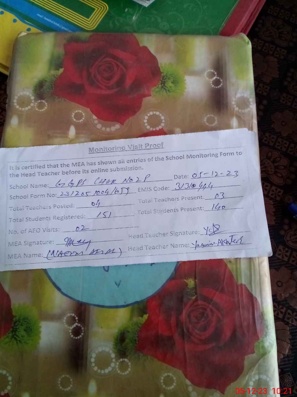 | EMIS Code: 31310444 | Name of School: GGPS CHAK NO. 2/P | |||