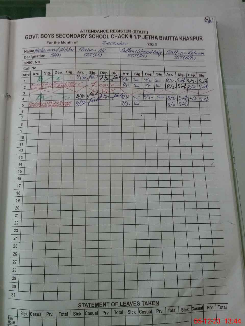 | EMIS Code: 31310006 | Name of School: GHS CHAK 1/P JETHA BHUTTA | |||