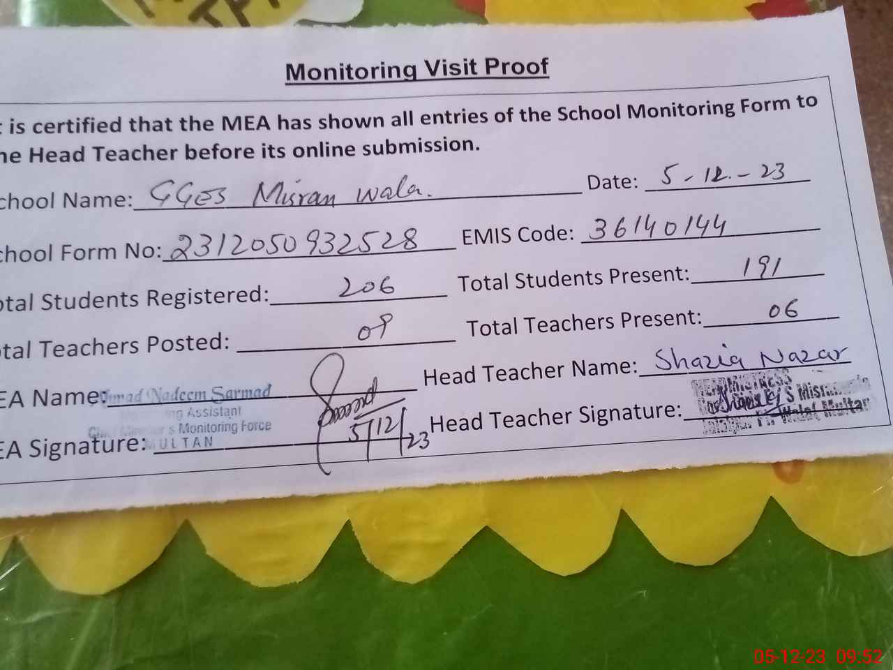 | EMIS Code: 36140144 | Name of School: GGES MISRAN WALA | |||