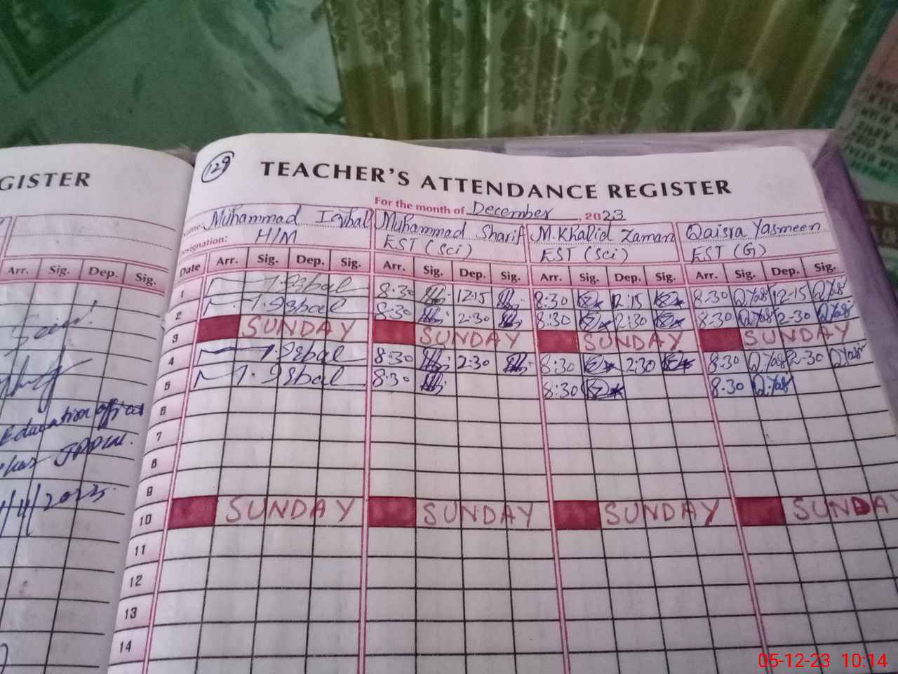 | Name: Qa**** Ya**** Designation: (School Headmaster's/Headmistress's) Est (General) Phone/Cell Number: 03**** |