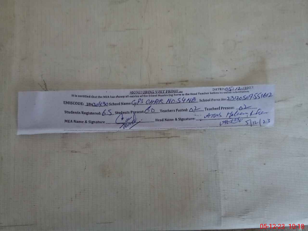| EMIS Code: 38420430 | Name of School: GPS CHAK NO.54 NB | |||