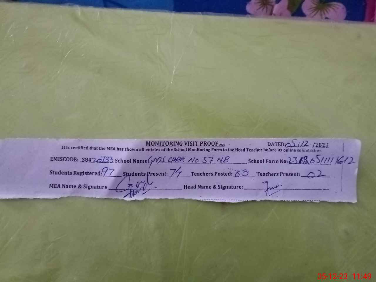 | EMIS Code: 38420733 | Name of School: GMPS CHAK NO.57 NB | |||