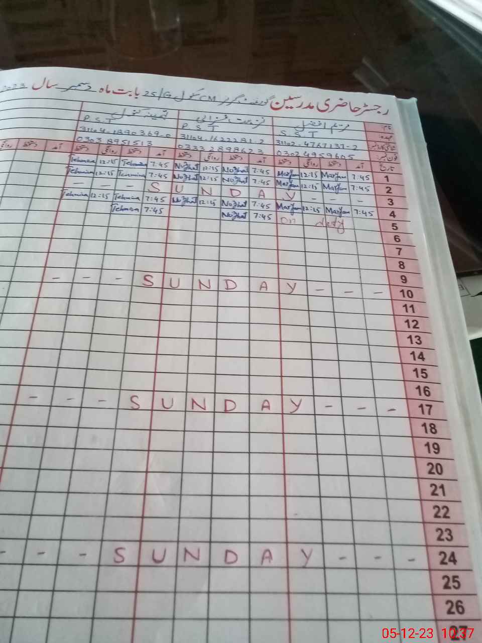 | CNIC | Full Name | Designation | R/C | Absence During Last Calender Month |