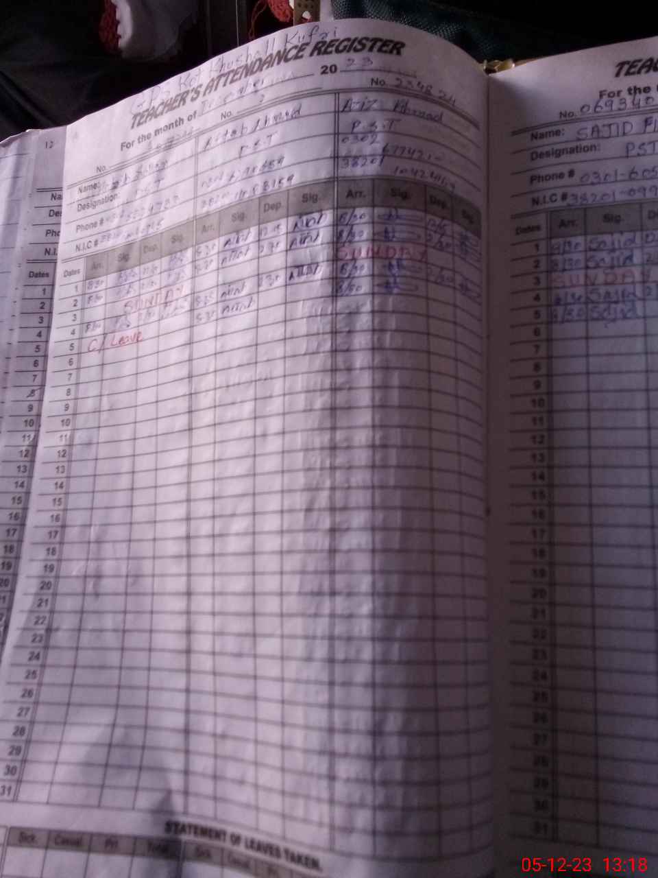 | Name: Ha**** Su**** Designation: (School Headmaster's/Headmistress's) PST Phone/Cell Number: 03**** |