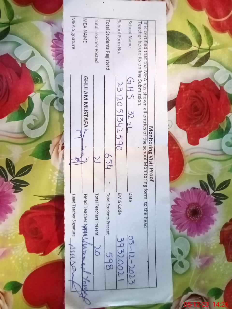 | EMIS Code: 39320021 | Name of School: GHS CHAK NO.32/2-L | |||