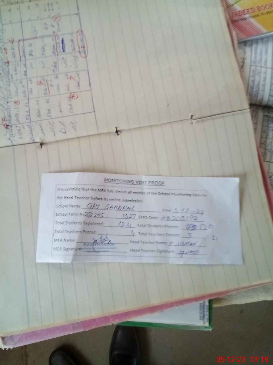 | EMIS Code: 38210192 | Name of School: GPS THATHI SANDRAL | |||
