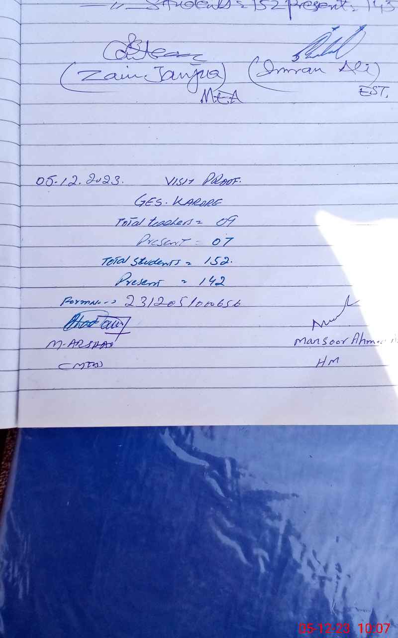| PP No.: 6 | NA No.: 57 | Mauza: KARORE | UC Name: KARORE | UC No.: 11 |