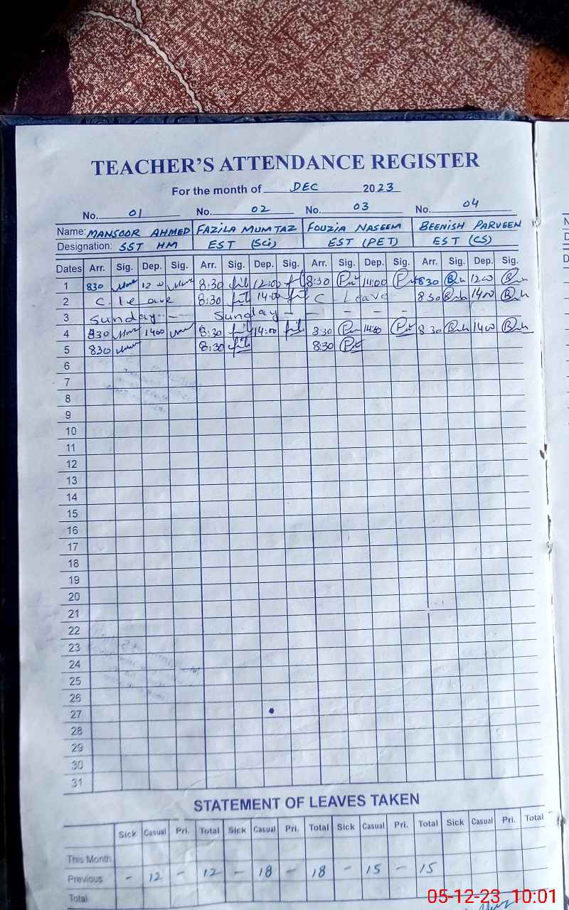 | 37**** | Be**** Pa**** | 3 | 1 | 0 | 0 | 0 | 0 | 0 | 0 | 0 | 0 | 0 | Absent (Un-Authorized) |