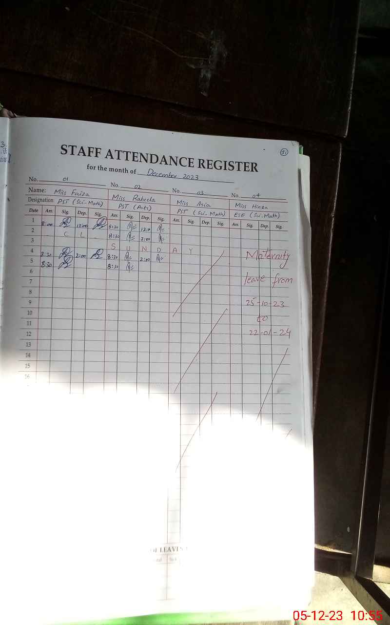 | Remarks (Use Separate Page if Required): 1 Hinza Hafeez ESE nic no 4250109093586 are not register in pmiu and sis app 2 the said teacher are on matinaty leave wef 24th October till today | |||||