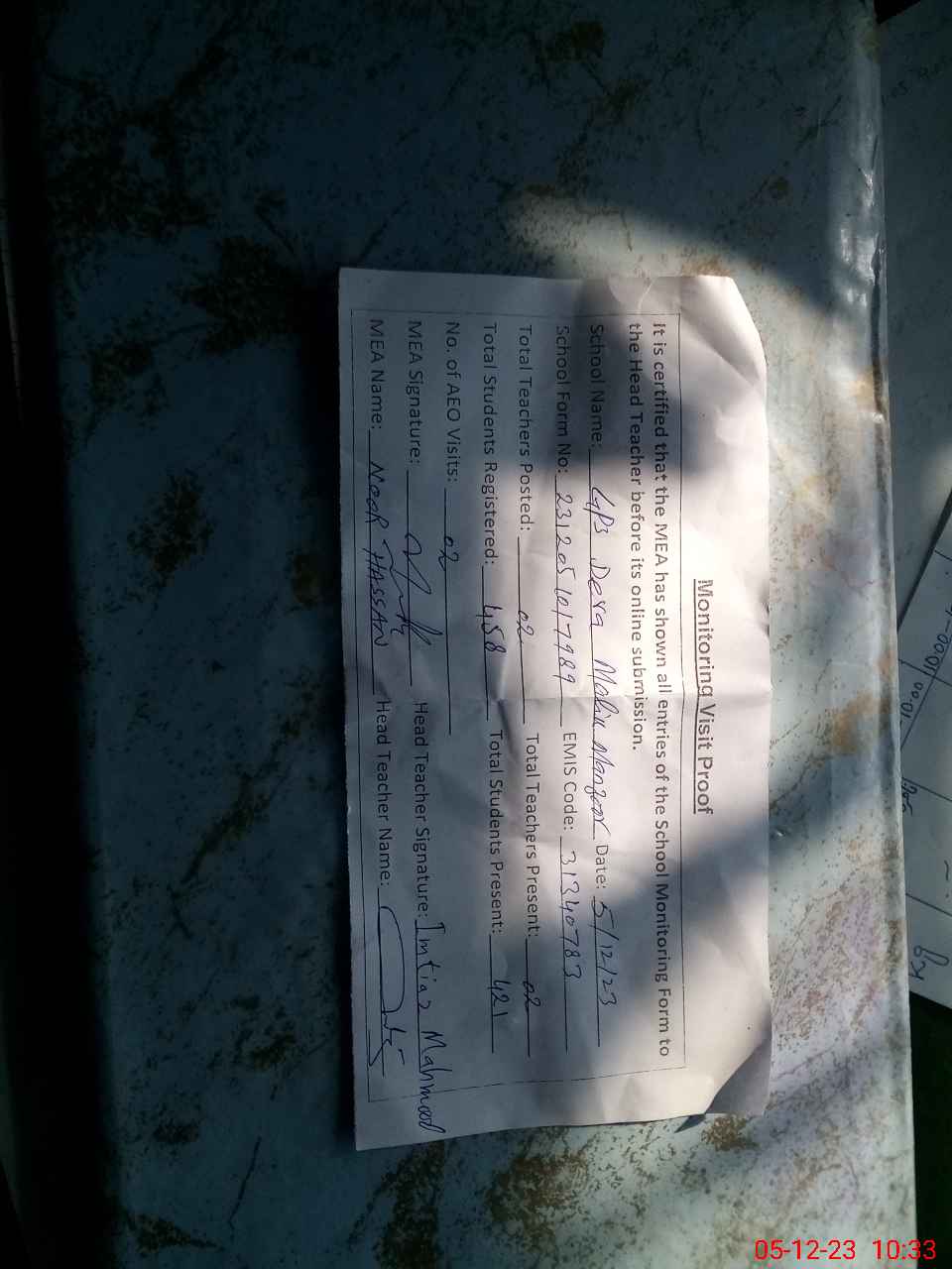 | EMIS Code: 31340783 | Name of School: GPS DERA MALIK MANZOOR | |||
