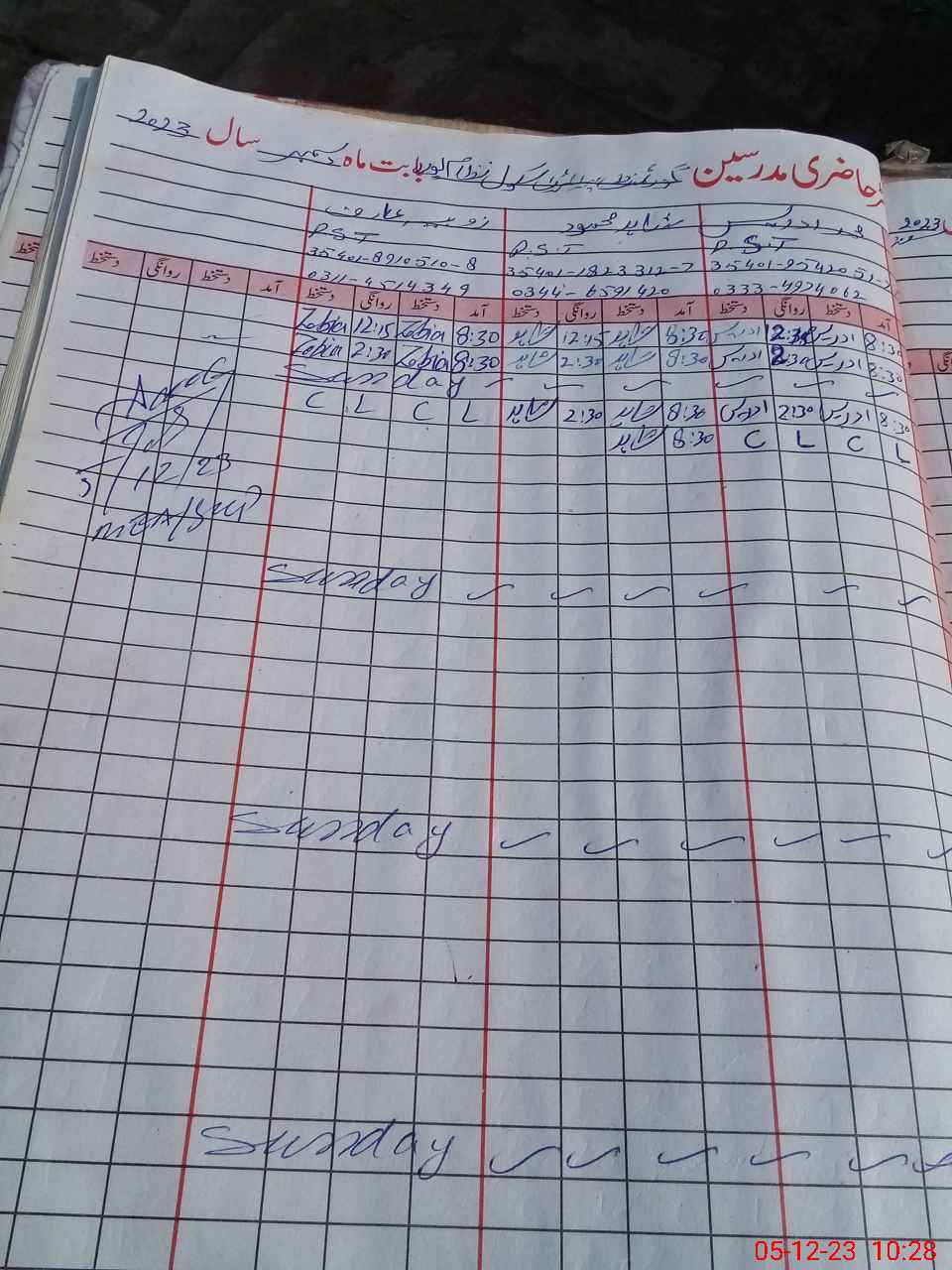 | CNIC | Full Name | Designation | R/C | Absence During Last Calender Month |