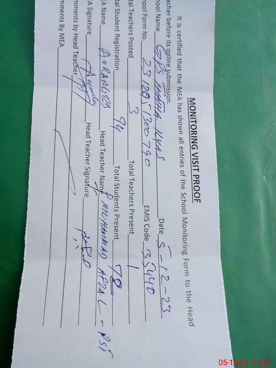 | EMIS Code: 35440404 | Name of School: GPS THATHA ILYAS | |||