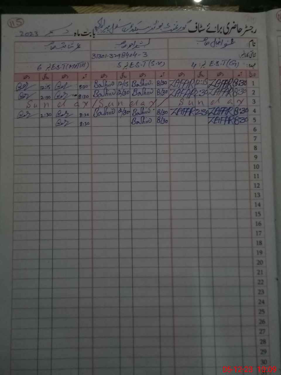 | CNIC | Full Name | Designation | R/C | Absence During Last Calender Month |