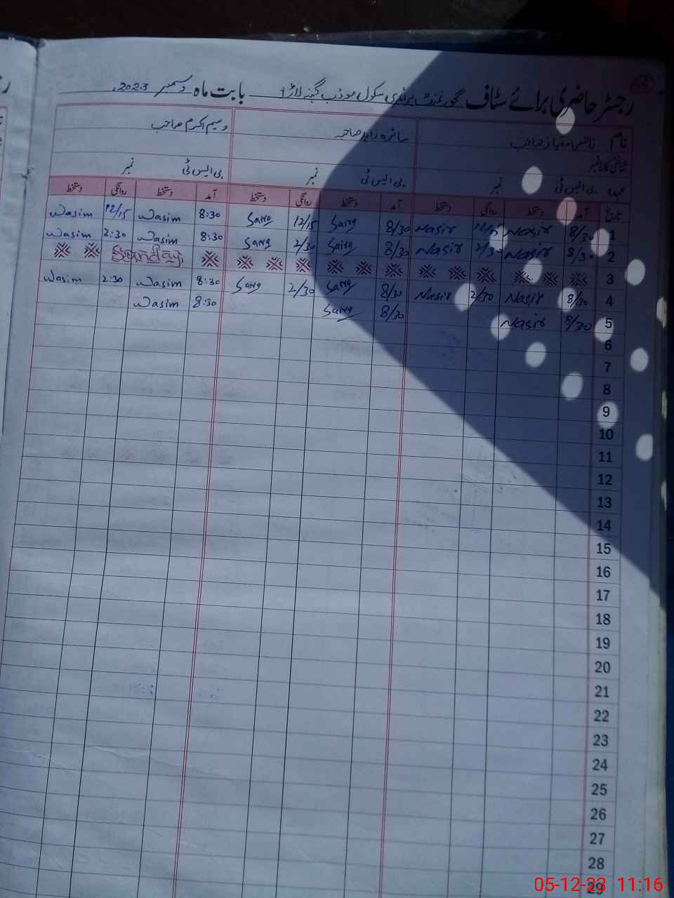 | CNIC | Full Name | Designation | R/C | Absence During Last Calender Month |