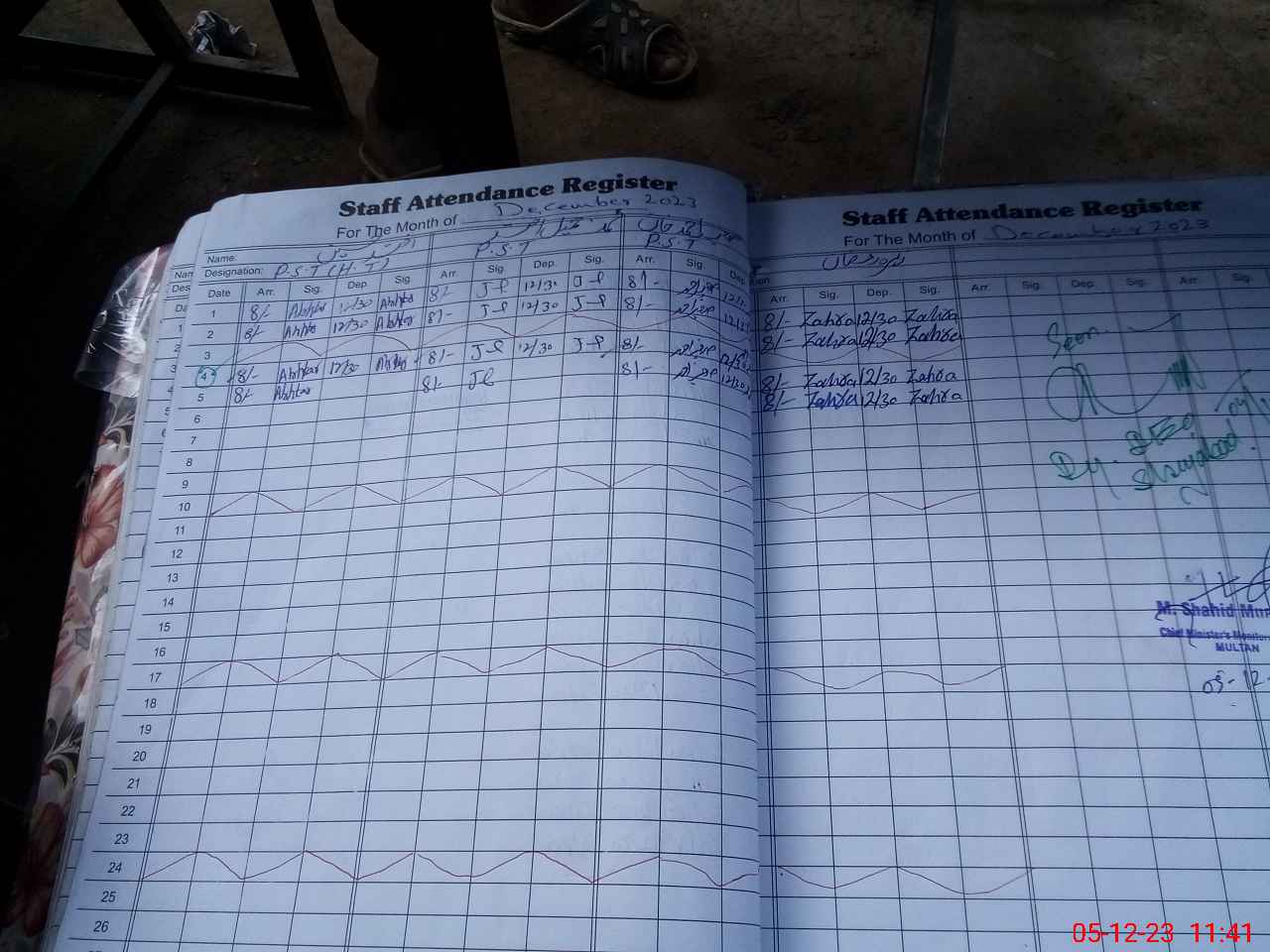 | CNIC | Full Name | Designation | R/C | Absence during last cal. month |