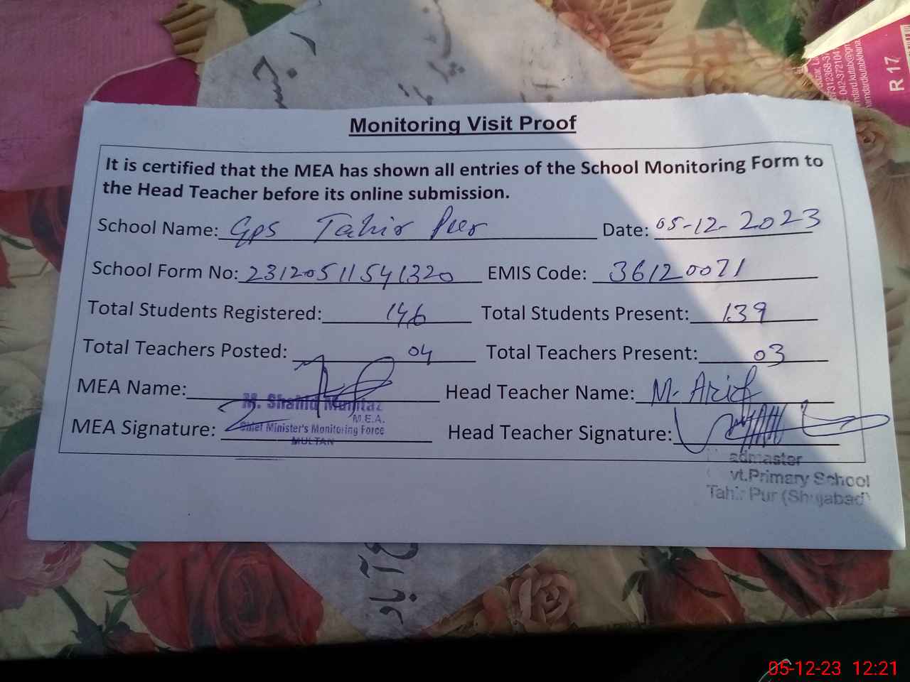 | EMIS Code: 36120071 | Name of School: GPS TAHIR PUR P/O & TEH.SHUJABAD | |||