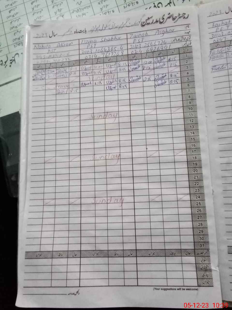 | Name: Mu**** BiBi Designation: (School Headmaster's/Headmistress's) H M Phone/Cell Number: 03**** |