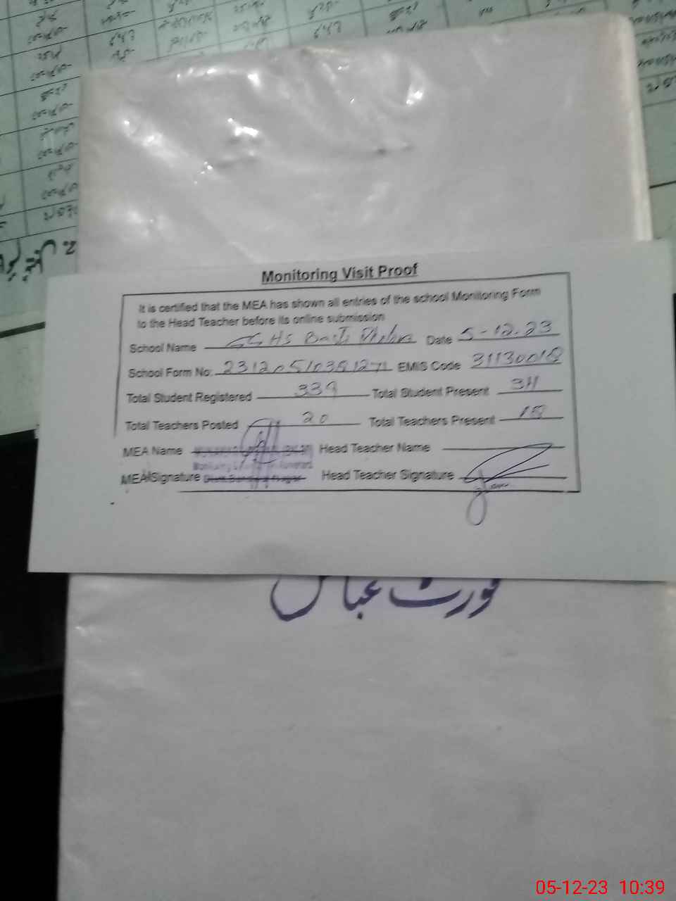 | EMIS Code: 31130018 | Name of School: GGHS BASTI PHULARA | |||