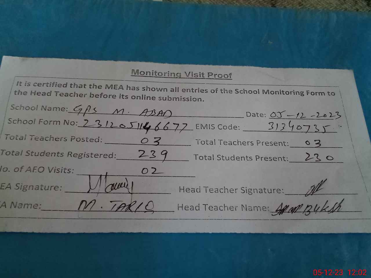 | EMIS Code: 31340735 | Name of School: GPS MUHAMMAD ABAD | |||