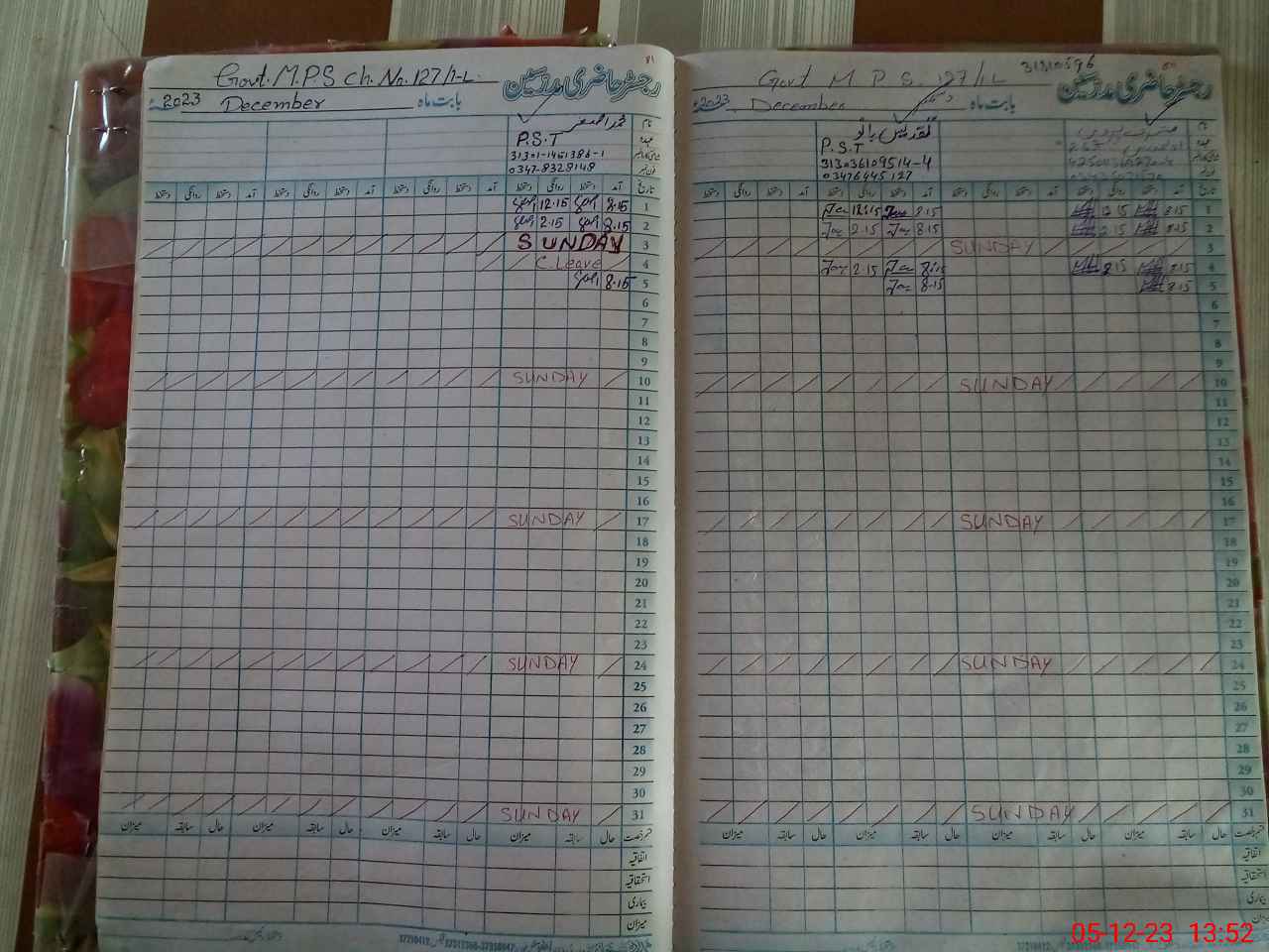 | Name: Mu**** Pa**** Designation: (School Headmaster's/Headmistress's) PST Phone/Cell Number: 03**** |