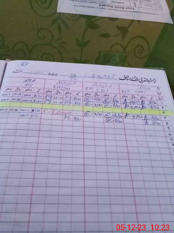 | CNIC | Full Name | Designation | R/C | Absence During Last Calender Month |