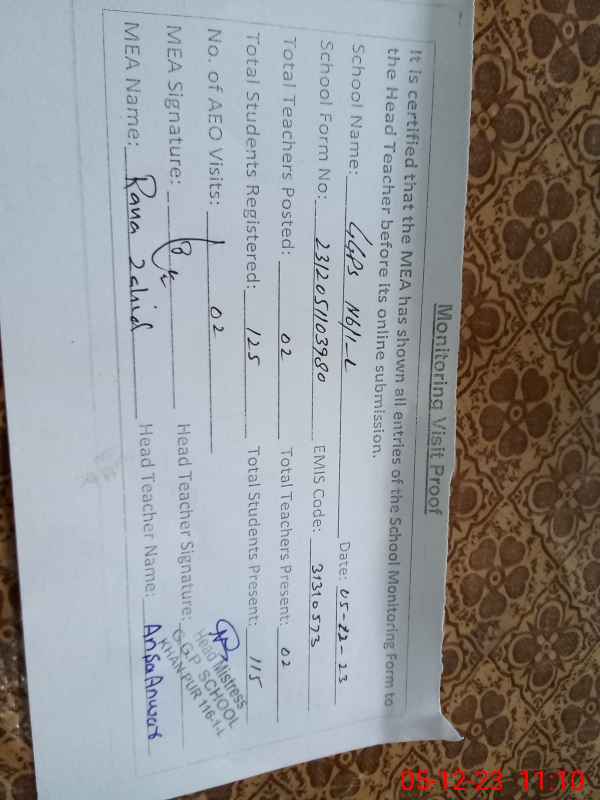 | EMIS Code: 31310573 | Name of School: GGPS CHAK NO.116/1-L | |||