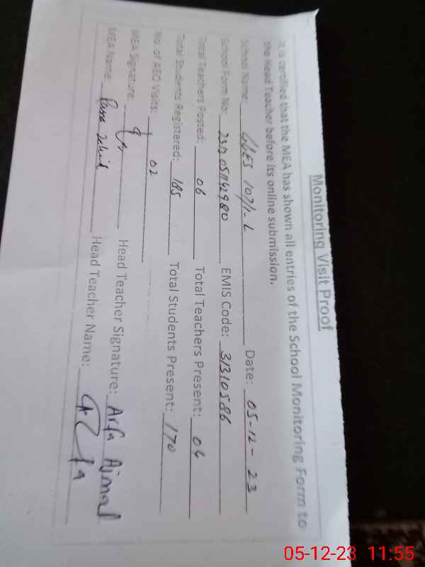 | Certified that this School was Inspected by the Undersigned MEA/DMO Today and the Information Stated Above is as Per Record. | |||||