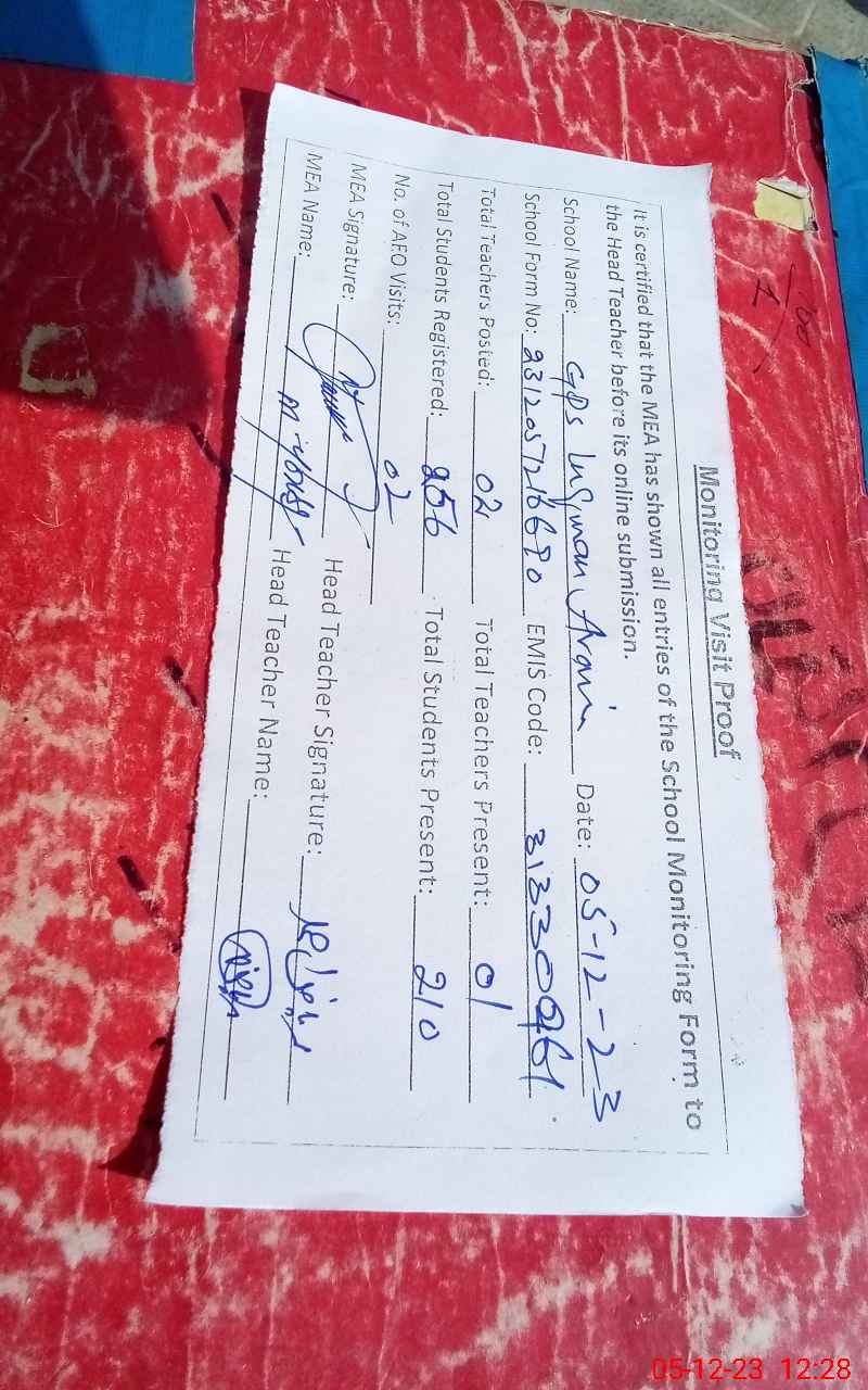 | Attendance Register | Head Teacher | MEA with School | Visit Proof |