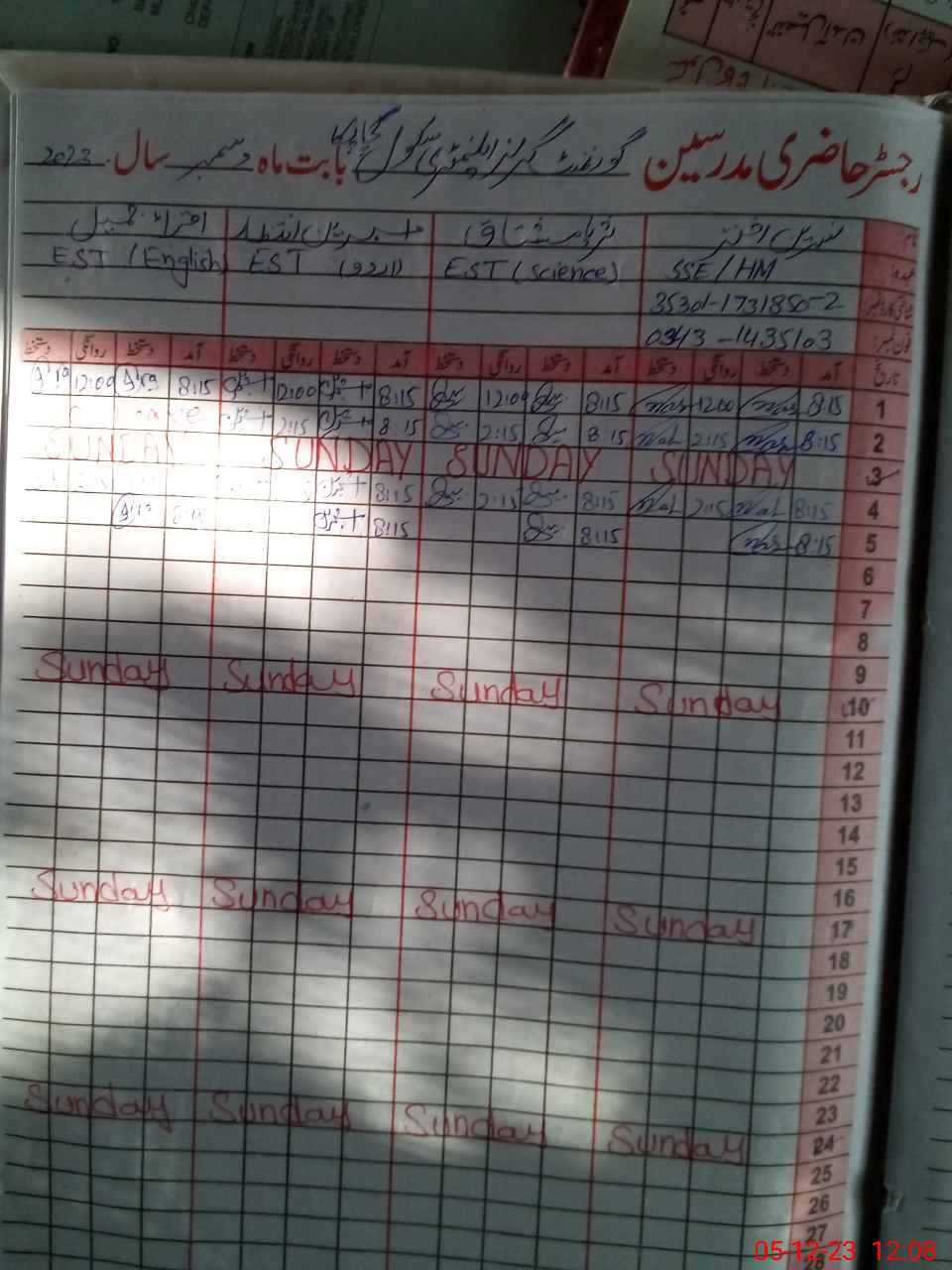 | Name: Am**** In**** Designation: (School Headmaster's/Headmistress's) HM IC EST Urdu Phone/Cell Number: 03**** |
