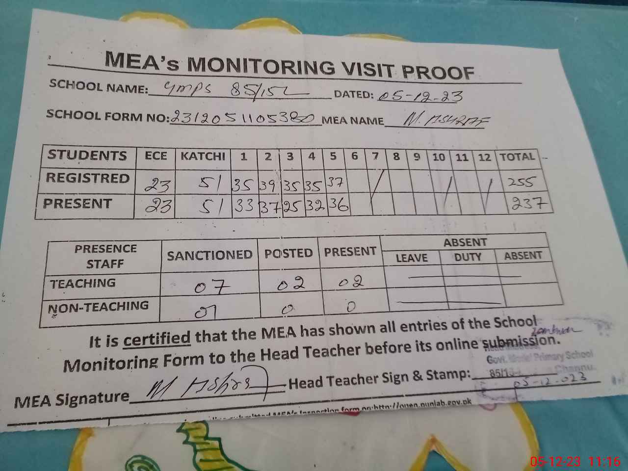 | EMIS Code: 36430335 | Name of School: GMPS 85/15-L, P/O 84/15-L, MIAN CHANNU | |||